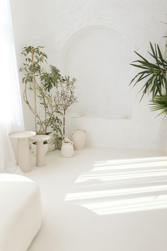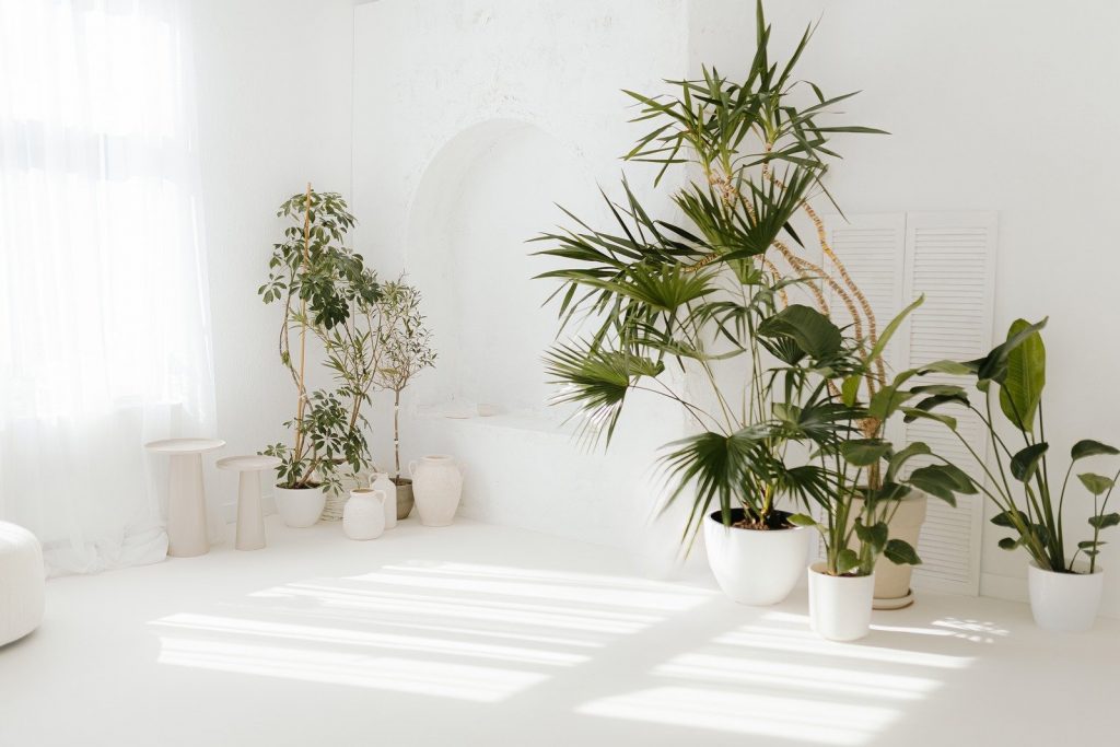 Wnętrze dopełniają wyłącznie żywe rośliny, które wnoszą naturalność, świeżość i kojący klimat.